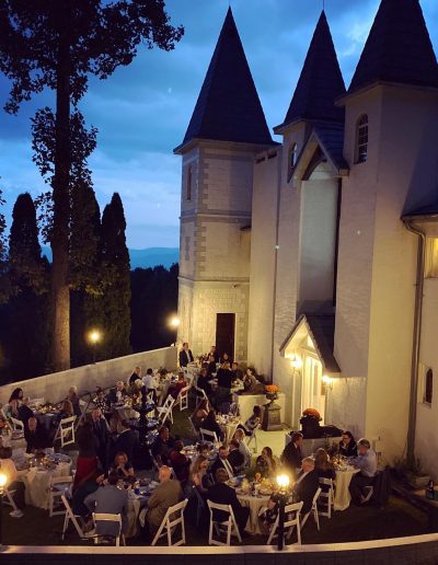 The ceremony will begin after the cocktail hour and will held on the balcony of the castle that boasts a stunning panorama view of the surrounding mountains and valley. A beautiful ceremony and view.